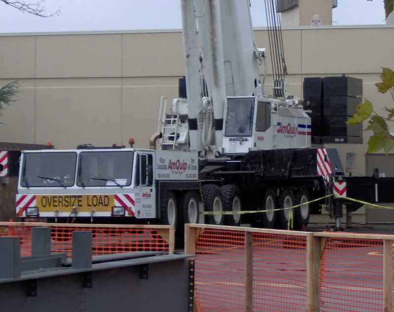 I needed some Cat paint so I went over to Ransome Cat in Whitehall, PA the other day. I decided to take a couple of pictures to share. I also needed some guitar strings, so I went to Guitar Center in on the same trip. When I got the parking lot, to my surprise, there was a large Demag sitting there. It appears they are going to be use it to lift steel beams to the center of the building. I did not get close to the crane, but appeared to be 1200 on the side. There is usually some smaller pieces of equipment along their driveway. In the far back corner of the yard. Some various equipment... 350L,2-330BL, and a Deere 450CLC... A growing collection of 953C's... This is the second machine I have seen with the power edge logo (345CL)... Some backhoes... View from a 416E... This ones a little dirty  Here is what the crane is going to be lifting...  One big hook...  The crane...  One huge jib...  Enjoy, Andrew