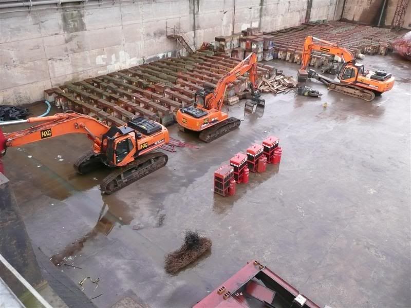 Great pictures Tim, Hopefully Remco or anyone else can let us know if there has been any mechanical damage to the machine as soon as they find out. I also found it interesting that they carried it via the second member of the boom, I know that those hydraulics on the machine are super strong and could support the overall weight of the machine but if there had been a failure on any of the other boom hydraulics... splash! I also suppose it comes down to a matter of good weight distribution for the lift. I would suspect that the undercarriage would need replacing, coming into contact with that much sea water for such a long time, it already looks heavily rusted from the third lift picture. Rowan. 1:25th scale CAT 375L excavator