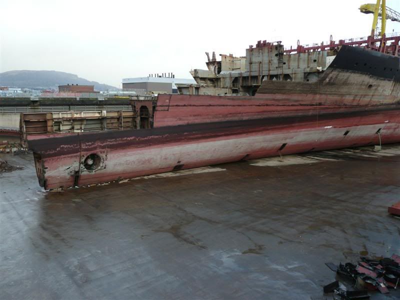 A big Shearlegs saved the 5110B triple.... Now that is what I call a rescue!! Smit does it again    MSC Napoli’ 18 January 2007 - present Container ship ‘MSC Napoli’ suffered severe damage during a violent storm in the English Channel on 18 January 2007. SMIT Salvage was contracted to salvage the vessel which involves the discharge of all 2300 containers and the ultimate refloating of the vessel. Removal of bunker oil and containers Initially almost 4000 tonnes of bunker oil was safely recovered. A large barge equipped with two cranes lifted off the containers and placed them on board a ‘shuttle barge’. At the beginning of March 2007 all 860 on-deck containers were removed. The salvage operation proceeded with the discharge of the containers from the holds. On 17 May the last container was discharged. This part, carried out by a salvage team of some 40 people, took about 4 months. Subsequently equipment was mobilized for the dewatering of the various compartments of the ‘MSC Napoli’. Refloating On the morning of 9 July 2007 SMIT Salvage refloated the ’MSC Napoli’, subsequently she was brought to deeper water. Separation On 20 July 2007 SMIT Salvage separated the fore section from the aft by means of a controlled explosion. Preparations were made to tow the fore section to a scrap yard. Moreover almost all equipment on board was removed, except for the most essential pumps. For the aft section SMIT Salvage was rewarded a ’caretaker’ contract. The salvage team of SMIT will also remove all remaining pollutants from this section. The final fate of this part of the ‘MSC Napoli’ has still to be decided. Towage On Thursday 9 August 2007 final permission was received for the towage of the forward section of the ’MSC Napoli’ to Belfast. The estimated transit time is 5 days. After bringing her to an even keel draft of 7 metres, she will be berthed in the Harland and Wolff Drydock on Friday 17 August 2007. The aft part is under control of automatic pumps which keep the damaged holds from flooding. Final phase Currently this project has entered his final phase, the removal of the aft section.