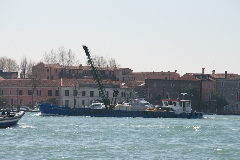 I lived in Venice for 6 months in 1990. What a beautiful magnificent city. Did you get to see any of the sea wall construction...or what about those tower cranes off in the distance? Always lot of 'old skool' stuff in Italy like that crane on the barge. Cool shots!
