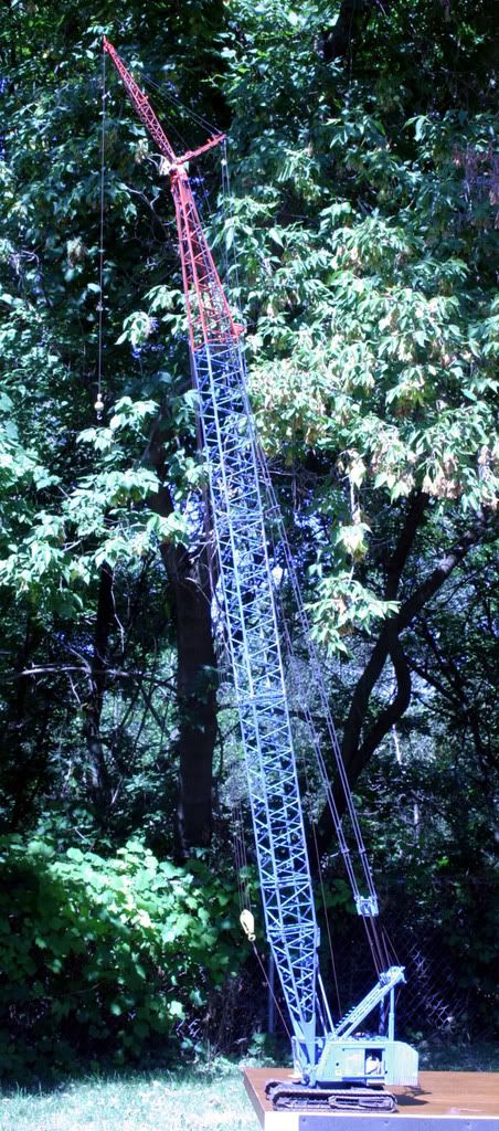 Back in 95 I started scratching a Manitowoc 400W in 1/15th scale. I haven't worked on it in years. So far, I have all the boom, jib, carbody, tracks, one track frame, and a big part of the rotating structure done. All the boom is painted, and most of it is weathered. The boom and jib, when all put together is 16 feet long.