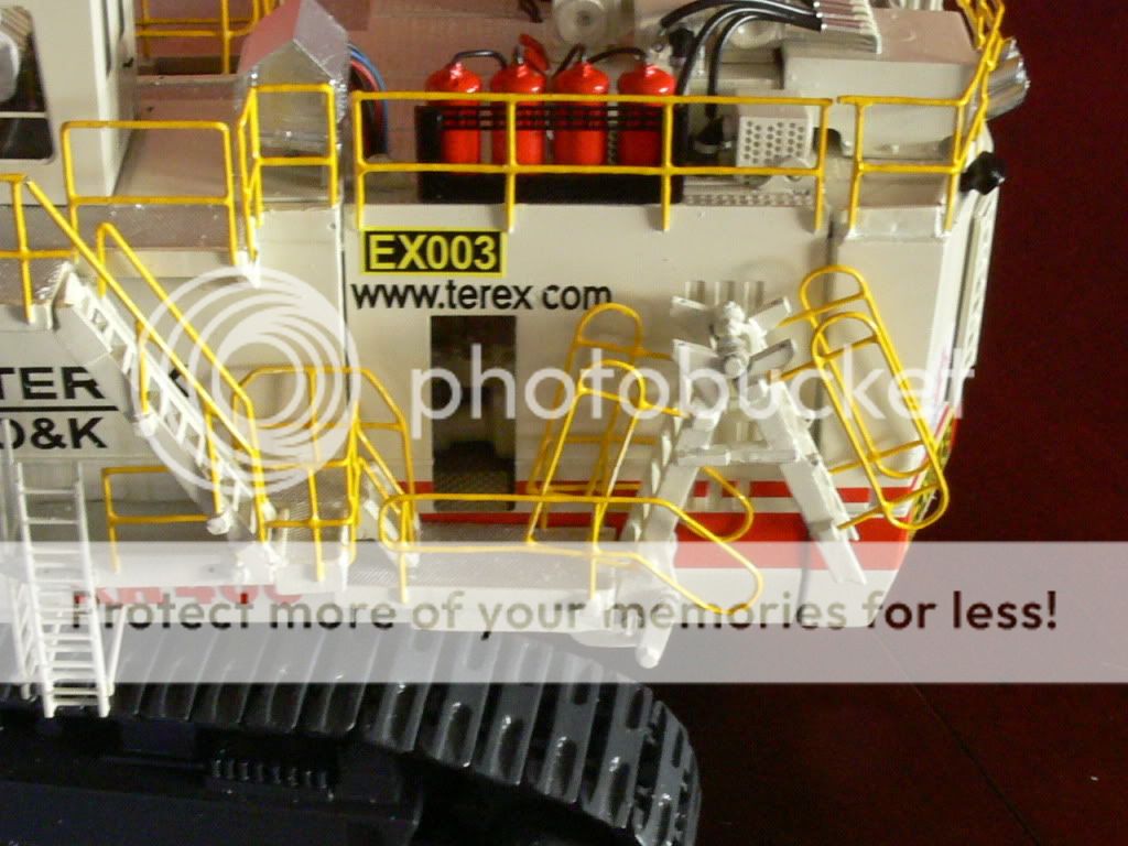 Thanks for posting the photo's Peter, wasn't expecting them to be quite that quick! I was actually searching for the other forum member (other than mitchtim) who received a P.K. RH400 (couldn't find the thread) when I came accross yours. It's quite refreshing seeing one done considerably different to the majority of other's, not just the color scheme but the little details like some of which you have mentioned. I notice he did away with the uncanny factory "off-set" stairway (which do not meet Australian standards) to the top deck much like Citic's real deal also - the oil sand's version's have these. footloose52 wrote:This next shot shows the right hand side collapsable steps and the 4 x Oil Cooling Fans, the Oil Sand models only have two fans, slightly larger and no R/H escape steps You can guarantee the oil sand's never get temprature's like they do in the summer month's in the Pilbara. Same deal with the PC8000's - need the 'tropical pack' down under (unless your at Cadia) or like the dash 1's at KCGM which have a resistor after the hydraulic temp PT100 sensor. Anyway, great model, been considering getting one myself - another Oz replica!