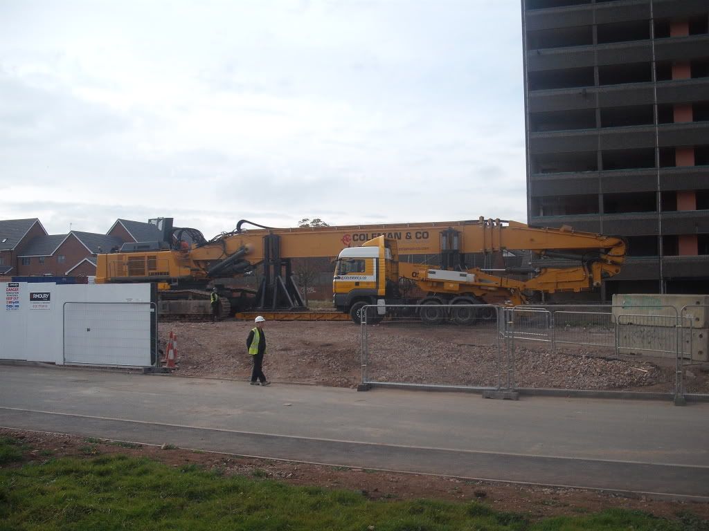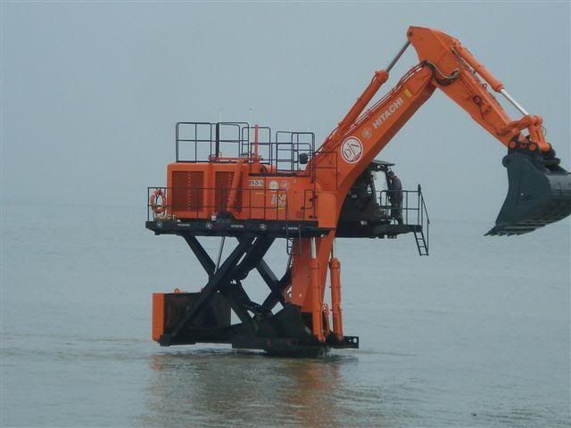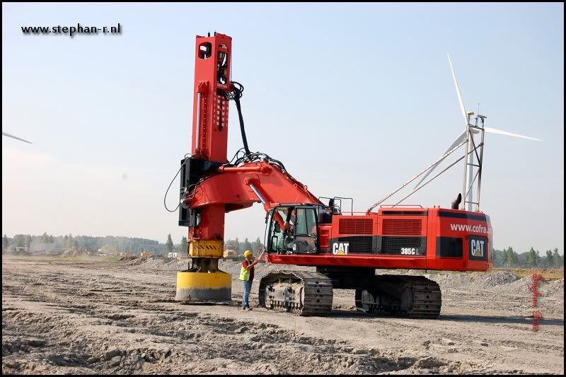 Took this in Amsterdam a few years back:  PS: the Cat 385CL in Rowan's reply is a Rapid Impact Compaction (RIC) unit, same principle as Deep Dynamic Compaction but with out the crane! Engineering; Its all STRESS and not just Force over Area!