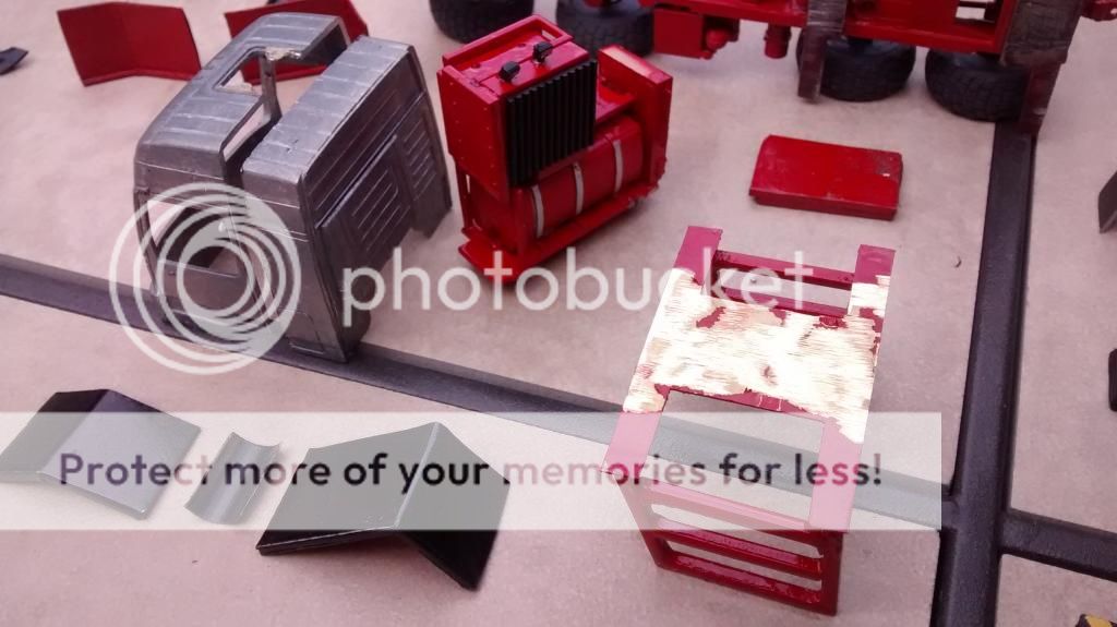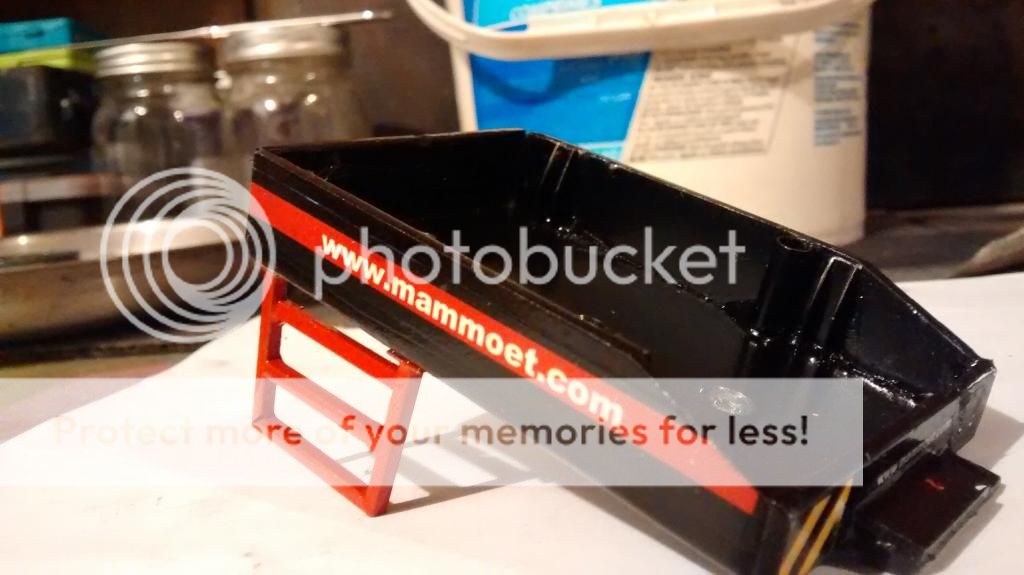 Works from last weekend: Ballast box and cab, then some of the decals. Box still needs more clear coat once completed. Must redo one of the side bars that have inaccurate angles, then add the lifting rings on the sides (in upwards position so the box and sidebars can be lifted; holes in box bottom are for metal screws which will allow for removal and replace by fithwheel if desired. Fenders will still remain in place):   "/>   "/>   "/>   "/> Fortunately even with the cab modification, the seam is barely noticeable:   "/>   "/> Next step is , then trim the cab interior so it fits in the smaller one, then customize the front bumper as shown here, thanks to Joe's valuable pictures:   "/>